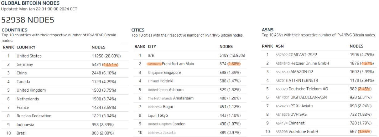 I guess your post just triggers to more questions in my mind. Why are there so many Frankfurt citizens involved in nodes? Are they culturally different from the rest of Germany, despite speaking the same language? Also, how are BTC miners pivoting in response to recent policy changes? Maybe you can cover the social aspect in another post.