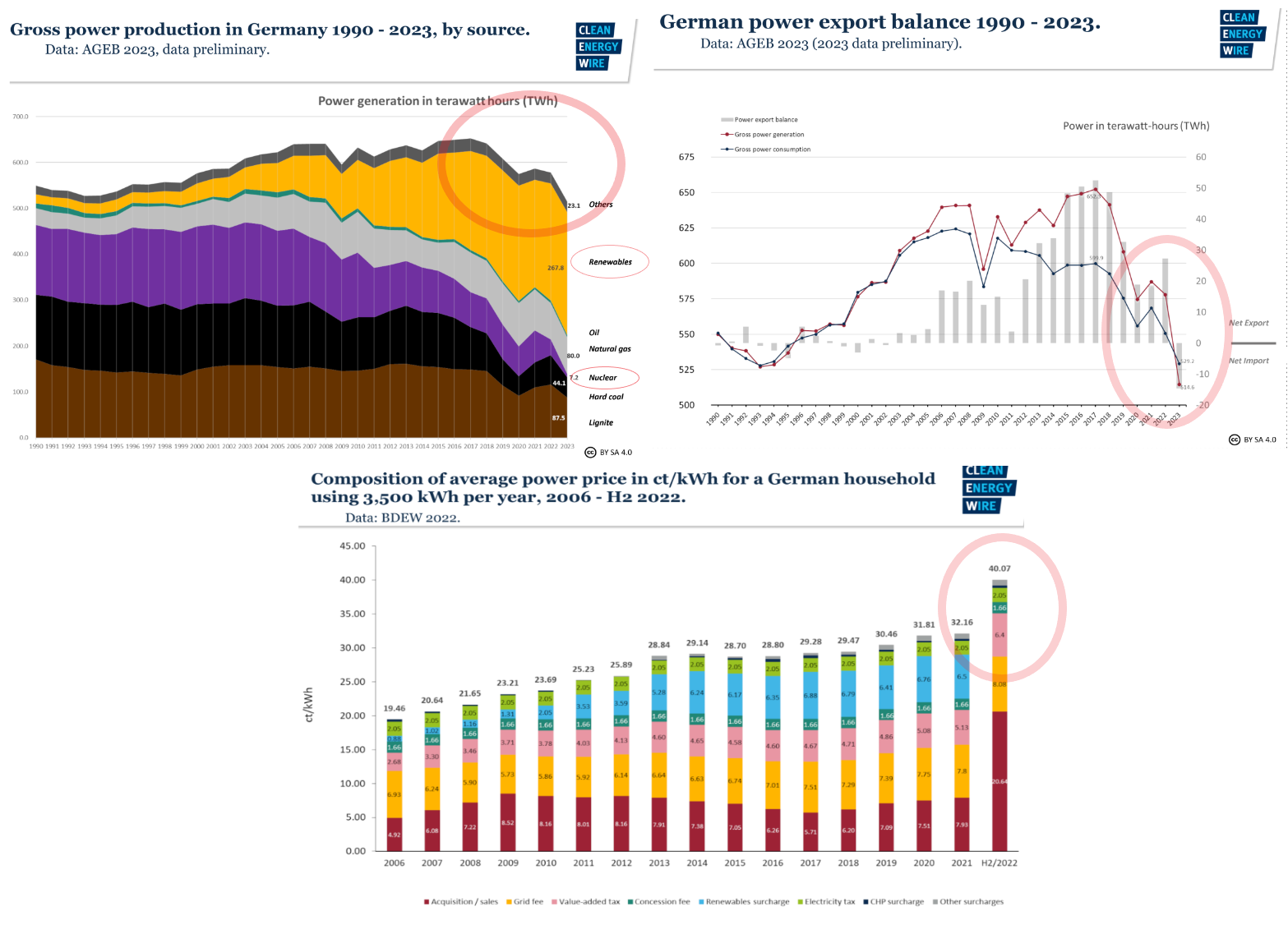 Mining is strongly dependent on the energy price and the further use of thermal energy output. I don't know how familiar you are with the German power network, but in short words, it's messed up. So let's take a brief look here. We closed nuclear resources, and we will close coal distribution in the upcoming years. Don't get me wrong; I don't like coal at all, but we are doing this without having an alternative for the power demand and making regulatory bases for alternative energies harder from year to year. Resulting in a change from a net power export country to a net import country, mostly relying on coal or nuclear power from France and Poland. You can follow up the switch in the past years with the following charts: