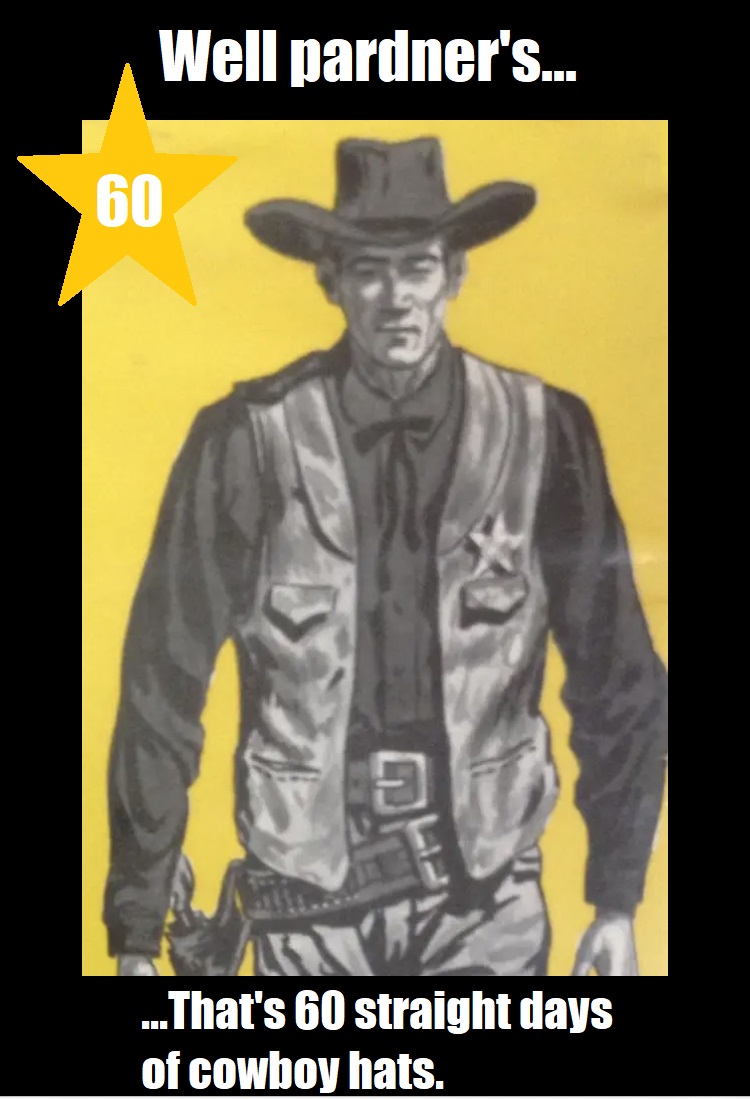 I feel that you are my senpai (senior in Japanese). Today is my 29th day of wearing the cowboy hat haha