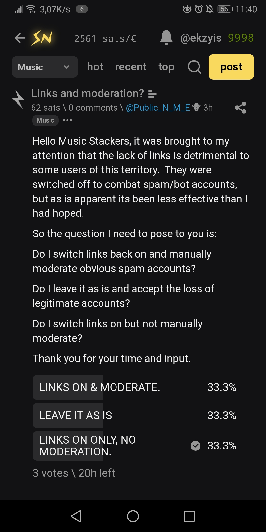 Hello Music Stackers, it was brought to my attention that the lack of links is detrimental to some users of this territory. They were switched off to combat spam/bot accounts, but as is apparent its been less effective than I had hoped.