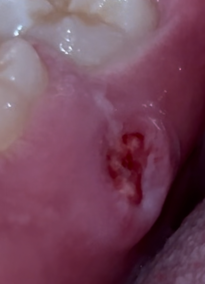 My dentist has no clue what just erupted from my gums. Told me to come back in two weeks if it isn’t healed. Does anyone here have a clue what this is?