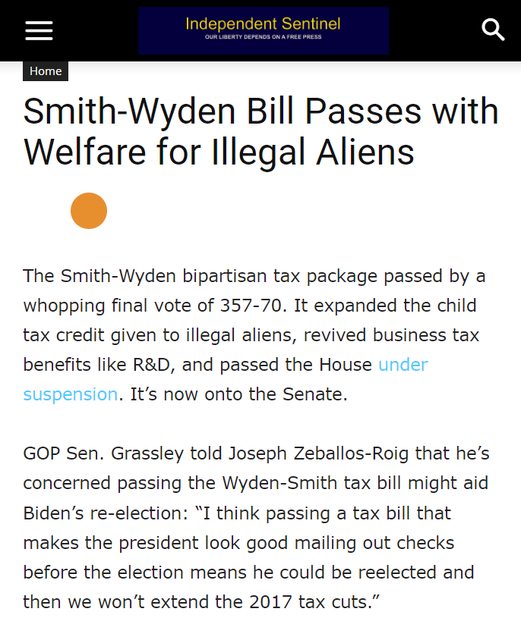 https://www.independentsentinel.com/smith-wyden-bill-passes-with-welfare-for-illegal-aliens/https://m.stacker.news/14596
