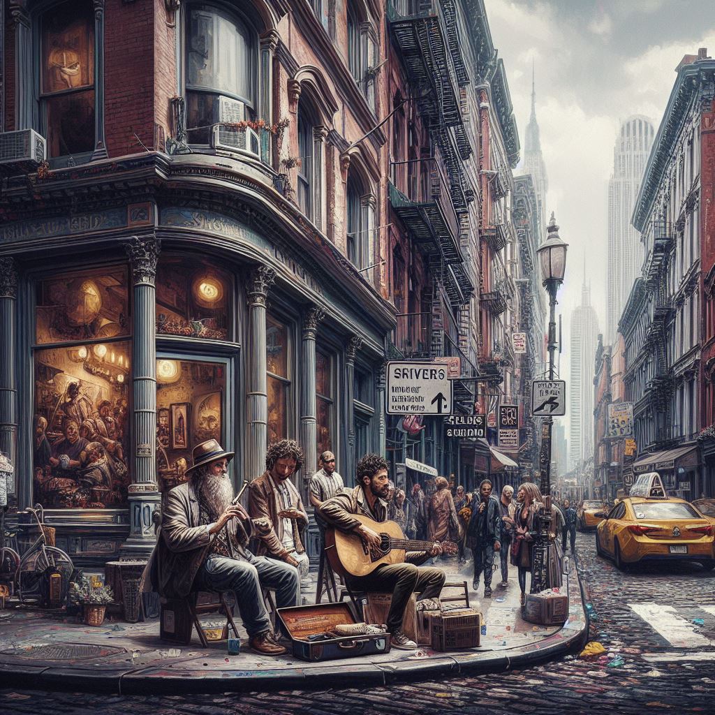 From my gallery "MIVERSIUM"From my gallery "MIVERSIUM"Miversium Art No. 0047 .Buskers on a corner in Sohohttps://m.stacker.news/15443