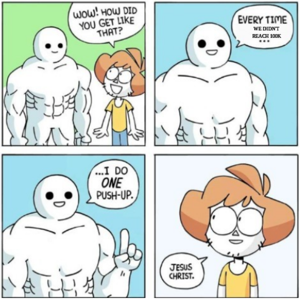 He beat me to the push up comment. BlokchainB beat me to the football post. I am just off my game today. I was actually up earlier than usual too because I heard the garbage truck outside this morning and rushed outside because in my superbowl watching haste I forgot to put the garbage out for pickup.
