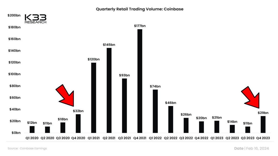 Coinbase RETAIL trading volume is only beginning to heat up.