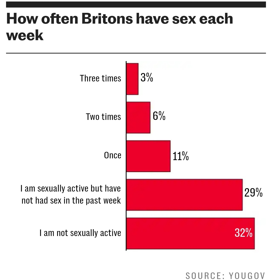 - A 2019 study found only 52% of Germans have sex at least once per month, down from 56% five years earlier.