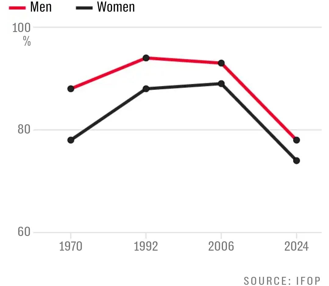 - A 2021 IFOP poll found that 39% of French people aged 18-24 had not had sex in the last year, up 10 points from the previous survey in 2009.