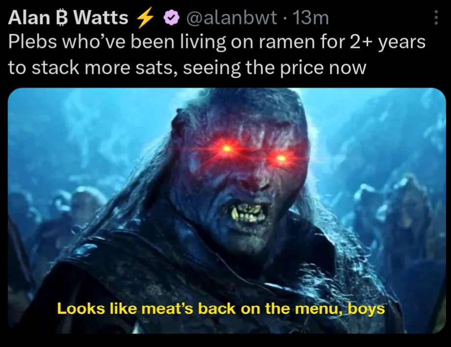 “Well done, anon. You finally stacked 1 bitcoin.”