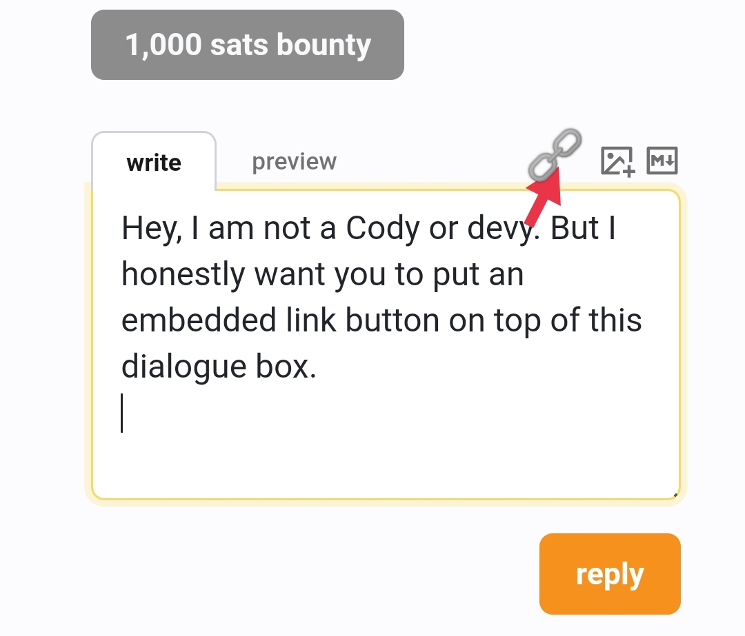 Hey, I am not a Cody or devy. But I honestly want you to put an embedded link button on top of this dialogue box.
