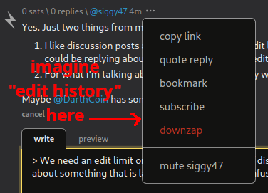 We need an edit limit or it will fuck up the flow of discussion. You could be replying about something that is later edited by the OP. Confusion
