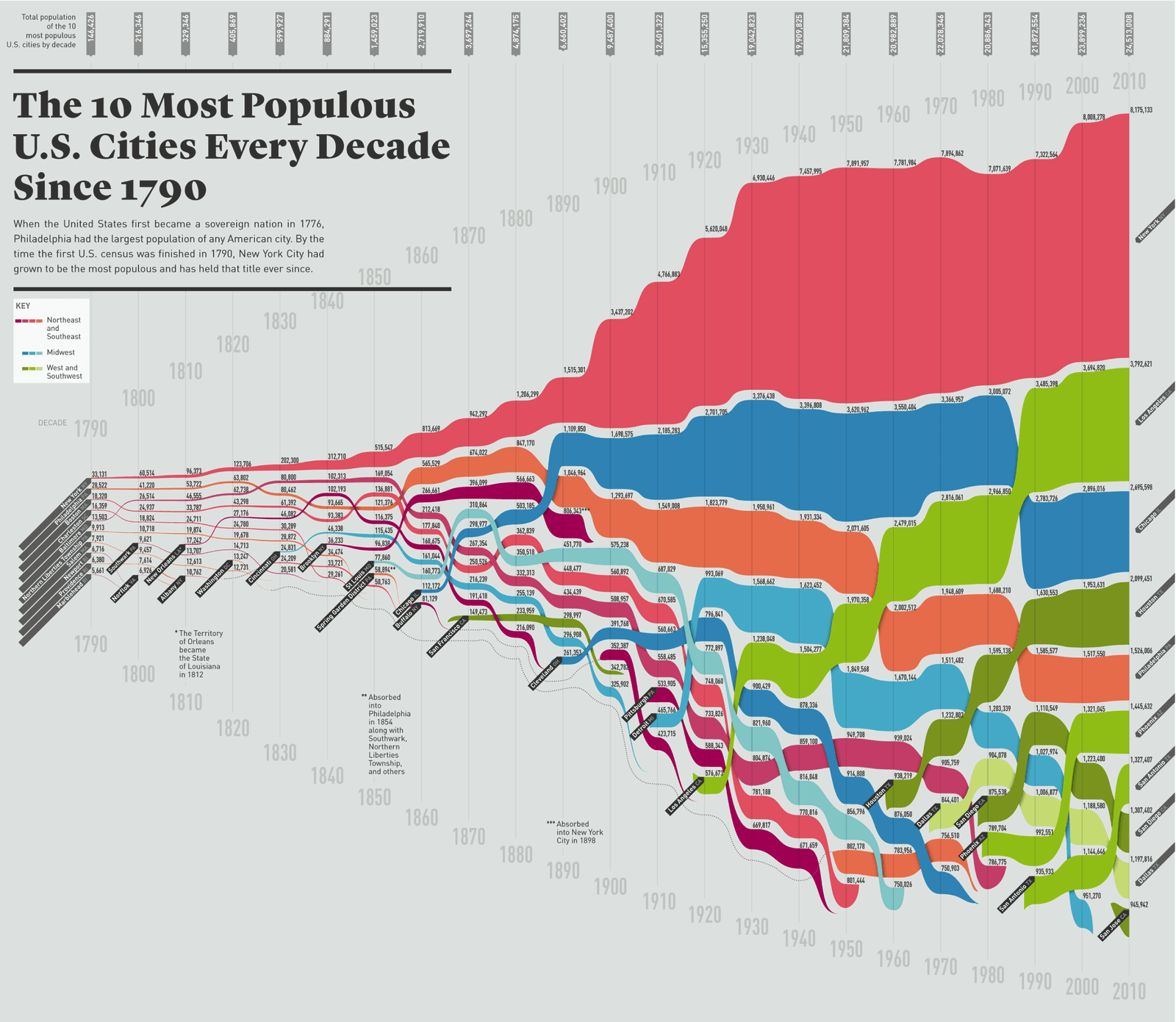 The top ten most populous cities in 1790 were as follows: