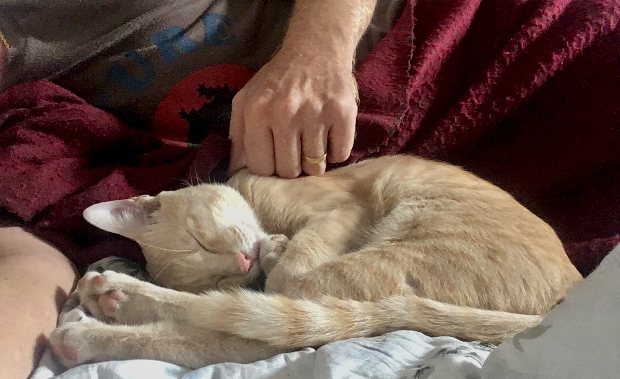 Today he was a bit restless, then settled down with me after inspecting the ground floor, it’s nice to spend some time with him like this again :-)