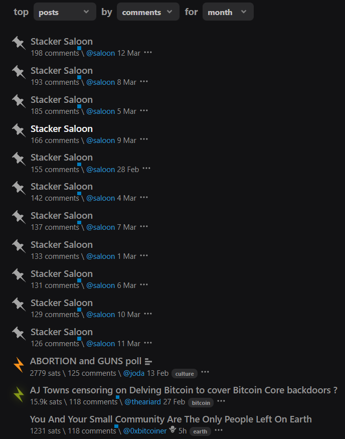 I like bitcoin, I like giving and receiving zaps but I don't read or post many things on the bitcoin territory. I rarely select it on the dropdown menu. Most of the things I read about bitcoin here come from the home page (hot & top).