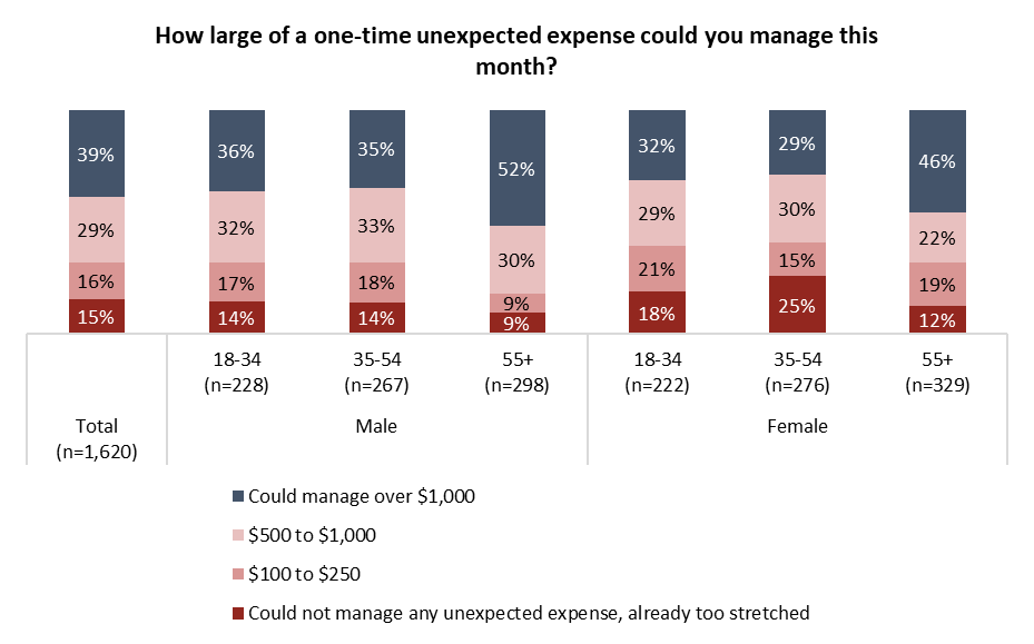 Here is a recent poll from Angus Reid showing only 39% of Canadians could afford an unexpected expense over $1000. 29% could afford $500-$1000. 16% $100-$250 and 15% said they could not manage any unexpected expense.