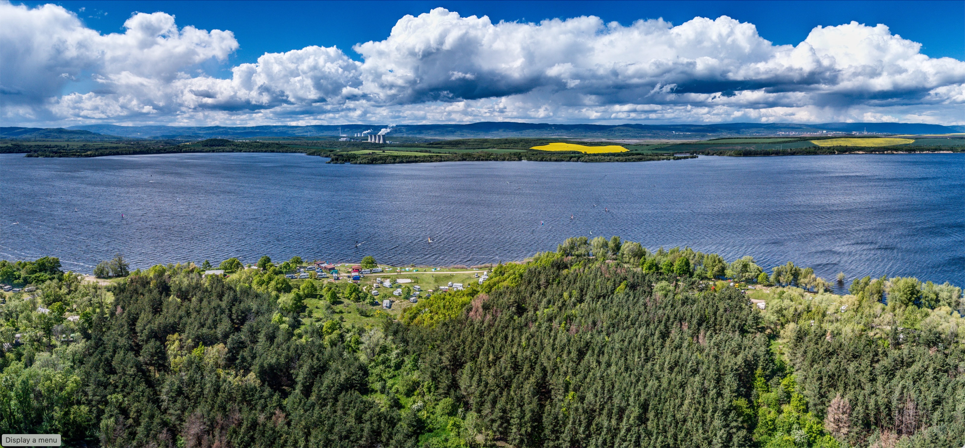 Panoramic view of the Windsurf Club at Nechranice on a beautiful, windy summer afternoon.