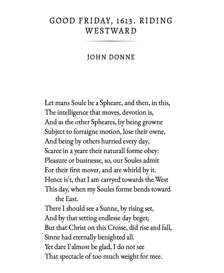 Good Friday, 1613. Riding Westward, by John Donne