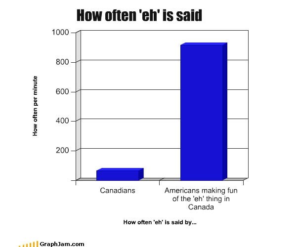 Now to return the humour that @grayruby brought me in the morning, I have found that Canadians have a habit of saying 'eh' for anything they listen. The following graph will answer the rest..