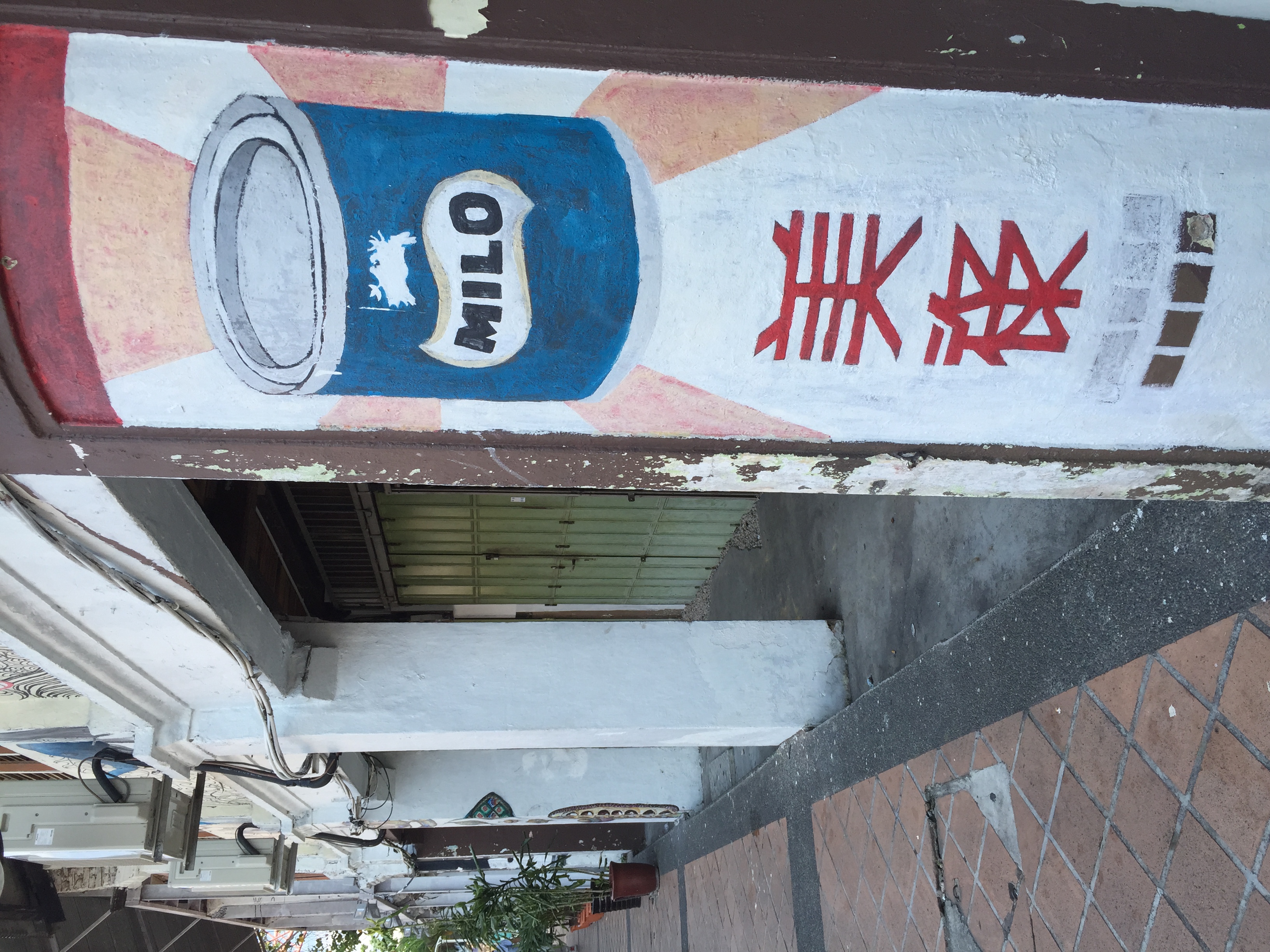 Sipping my Iced Milo while looking at this wall painting of Milo.