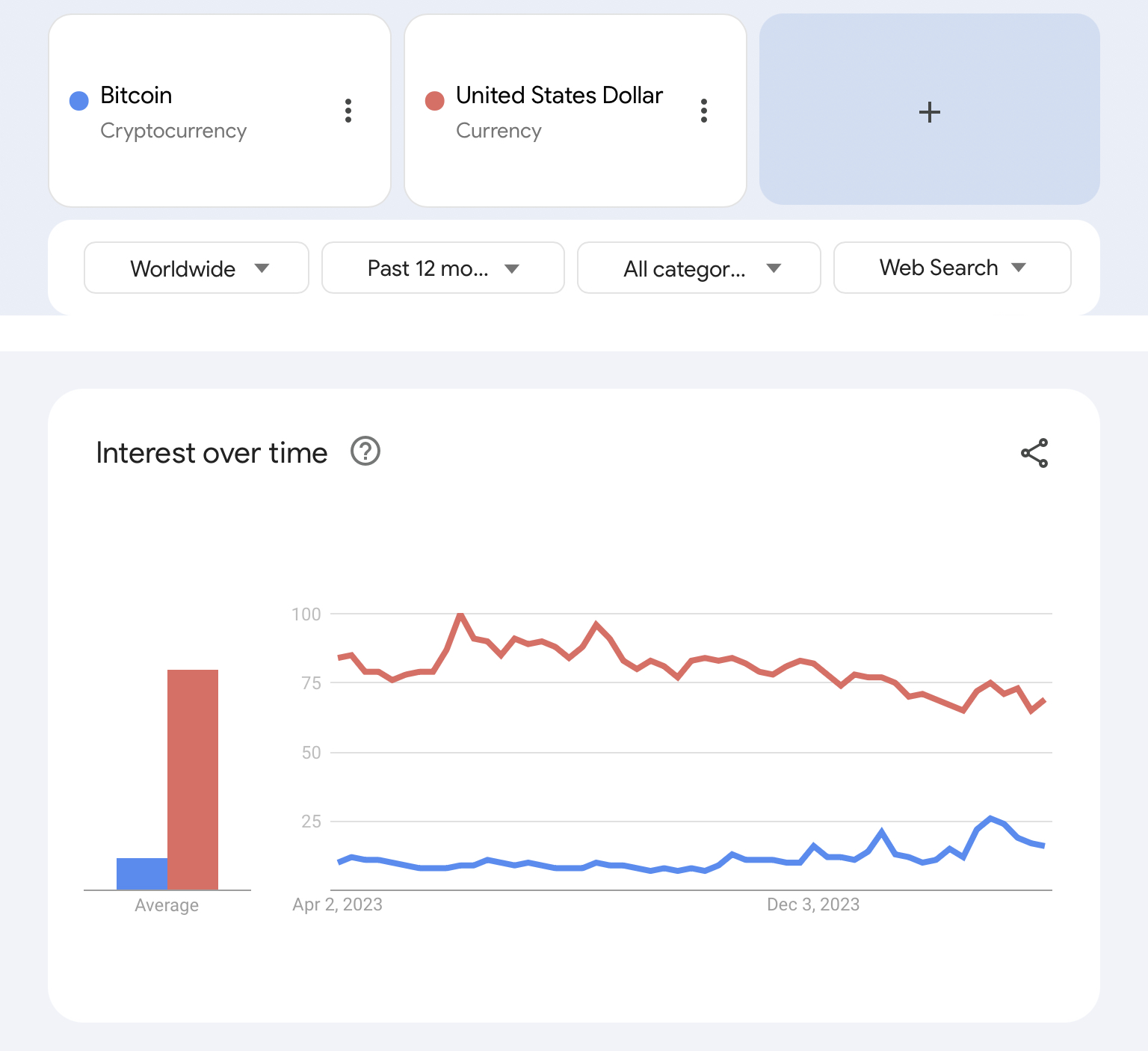 I don't think those searches reflect the whole reality, many Bitcoiners don't use google to search for Bitcoin, that's for sure.