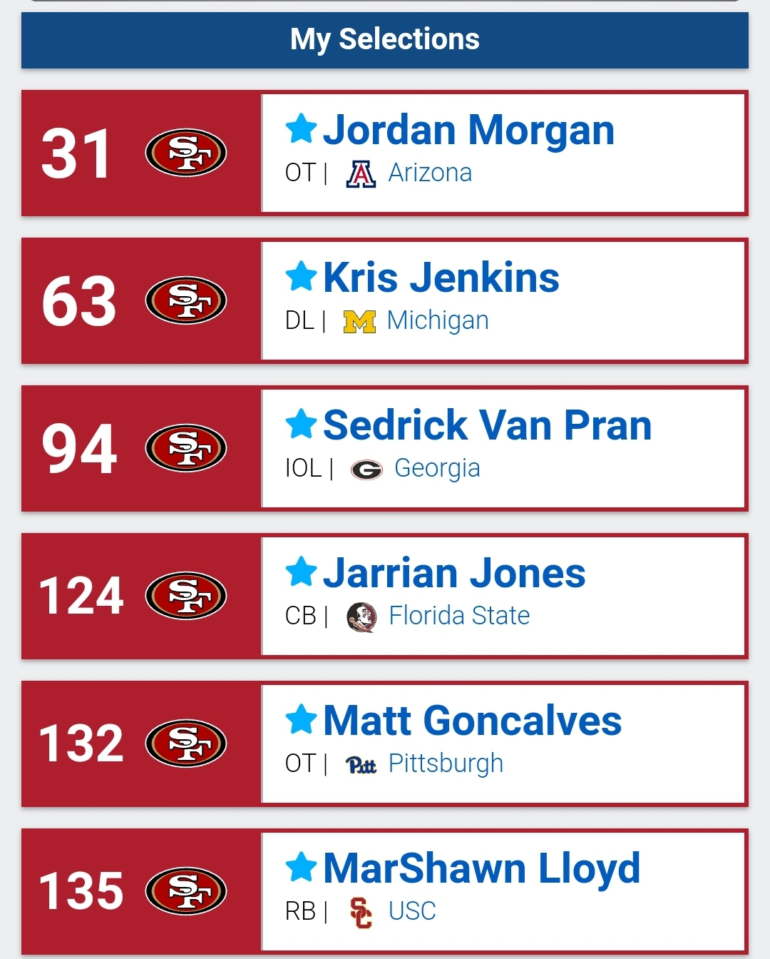 So today your mission should you choose to accept it is a mock draft of the San Francisco 49ers.