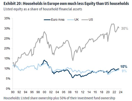 Europeans are waiting like rabbits before snakes for the European Central Bank and the debt makers in politics for their money to be inflated away. In view of the dramatic debt situation of some countries, the debasement of money is pre-programmed and will be carried out before people's eyes. Just 10% of Europeans' assets are invested in shares. I am not even talking about the best protection against currency debasement, Bitcoin, but about applying the old principles of wealth preservation as the Americans do. It is also interesting to see that over the course of time there has been virtually no adaptation of knowledge or change in the reaction pattern of the European masses. This is the recipe for permanent and inherited poverty, because even in school education, and I know the example very well from Germany, no financial education is offered. The majority of Europeans are financially dumbed down.