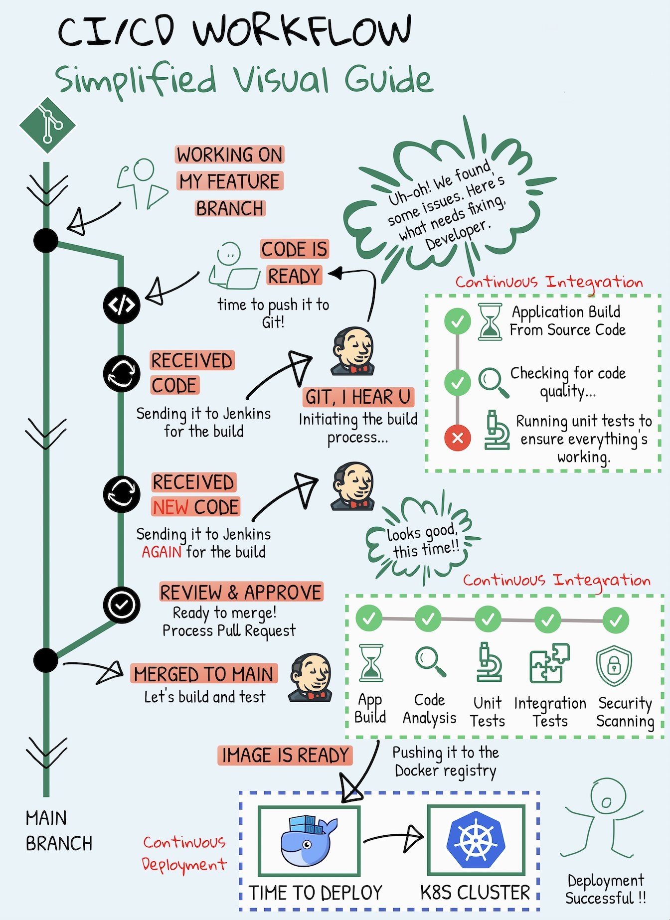 𝗖𝗼𝗻𝘁𝗶𝗻𝘂𝗼𝘂𝘀 𝗜𝗻𝘁𝗲𝗴𝗿𝗮𝘁𝗶𝗼𝗻 (𝗖𝗜) is a foundational practice in DevOps where developers frequently merge code changes into the main branch, often multiple times a day. This process is complemented by automated testing to ensure new changes integrate seamlessly with existing code. The primary goal of CI is to find and address bugs quicker, improve software quality, and reduce the time required to validate and release updates