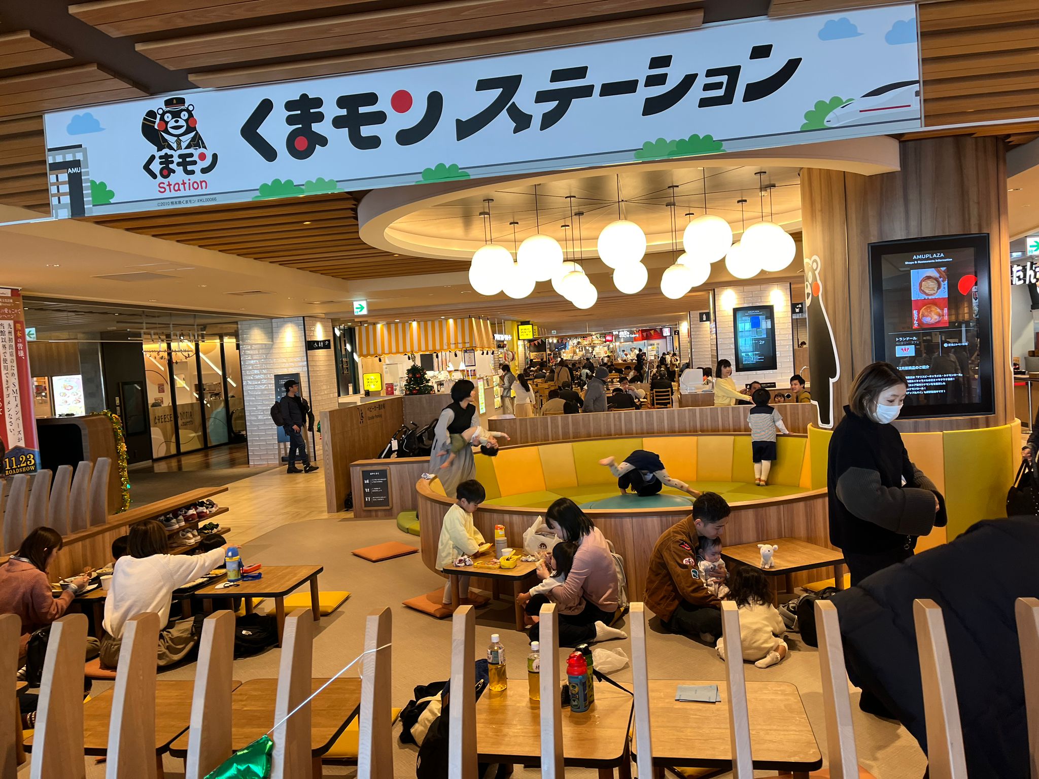 Playing at the food court at AMU plaza, Kumamoto City