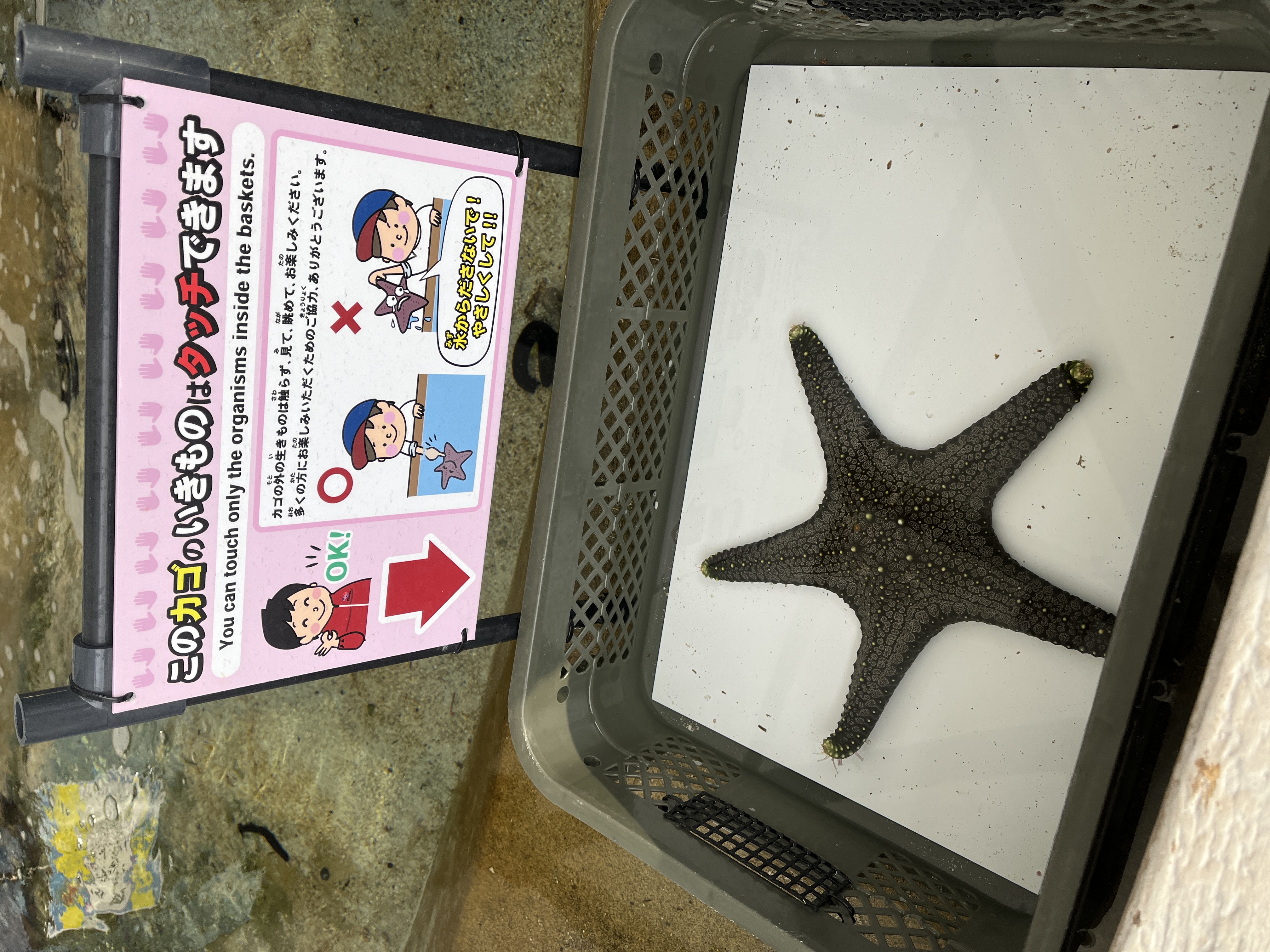 Touching marine creatures at Kagoshima Aquarium