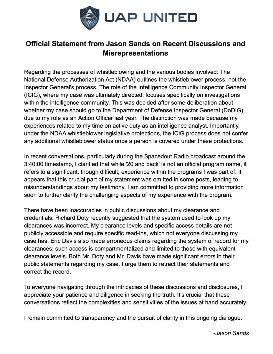 Jason Sands came out publicly on an X space a few days ago. Sands addresses criticism from Richard Doty and Eric W Davis.