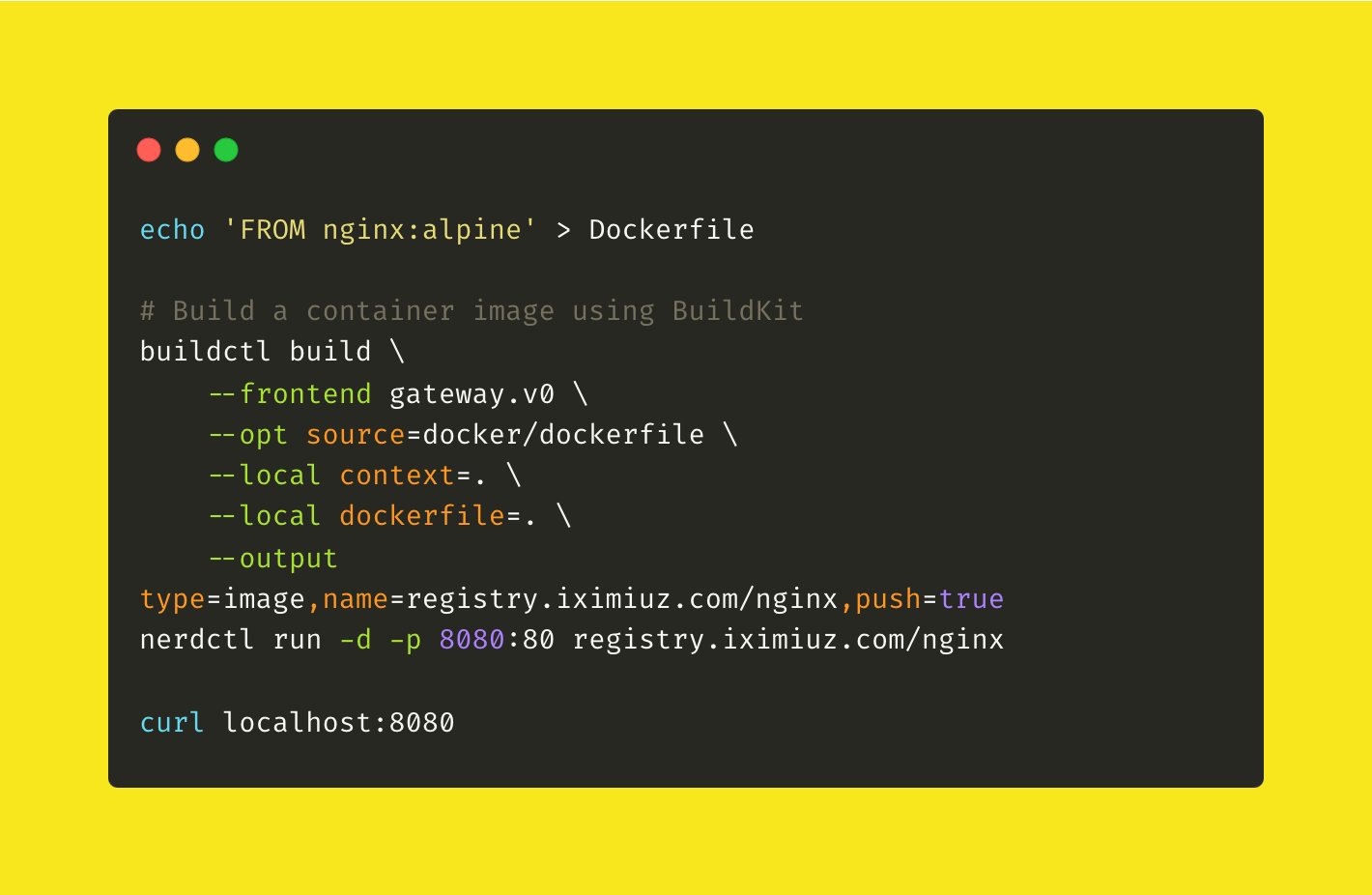 It's surprisingly easy to build an image without Docker or any other "high-level" runtime - thanks to BuildKit (a daemon) and buildctl (its CLI client).