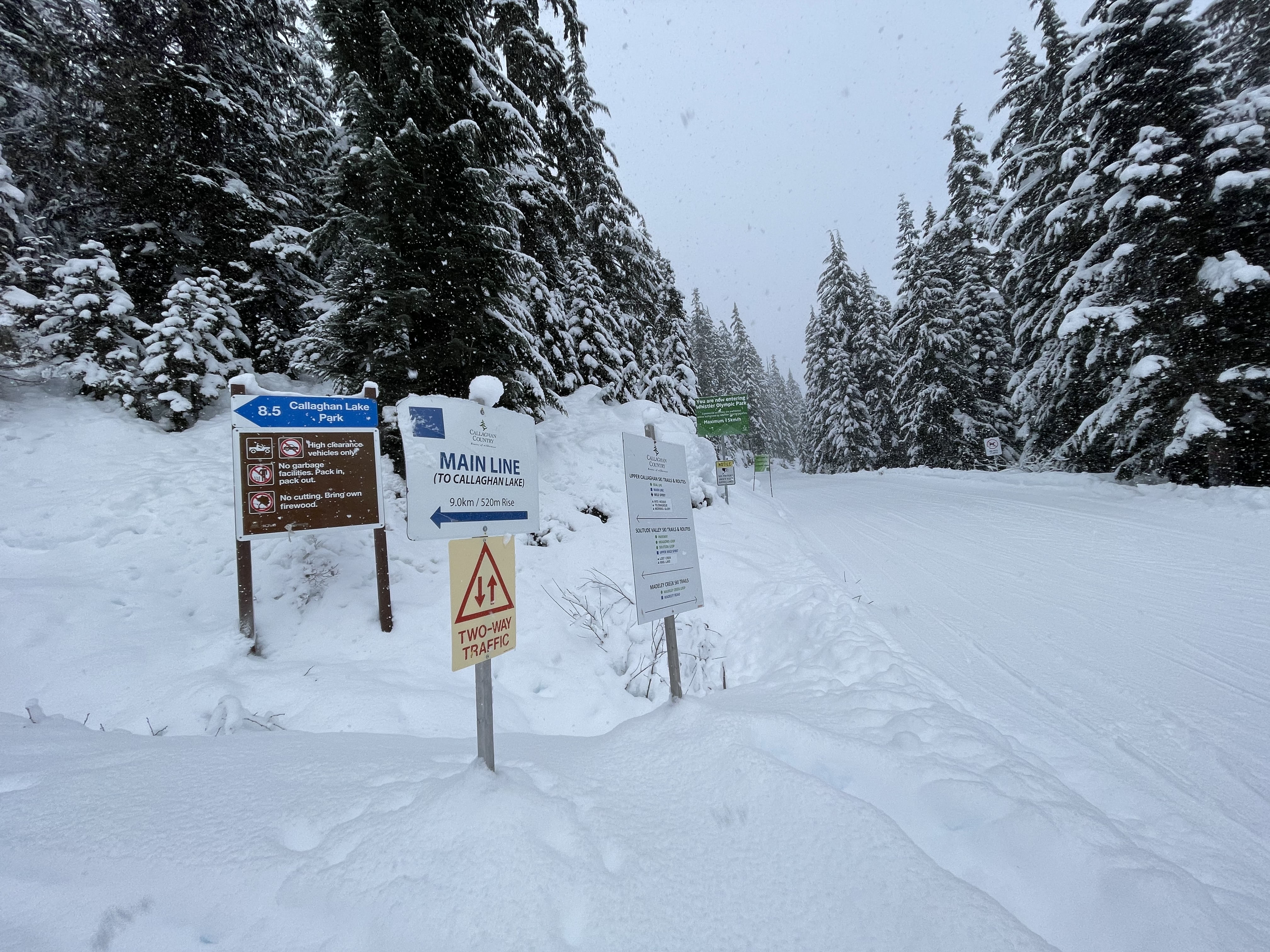 I was having my weekly morning walk with my friends yesterday morning and we noticed that the snow on top of the mountains were melting away. Then the discussion went to "next week it was suppose to get as warm as the low 20 C's". Winter had been officially over for quite some time, since all the cherry blossoms in the city had already bloomed then fell, and it made me want to make one more post about winter. So this week, we head to Alexander Falls, which is located in Callaghan Country, near Whistler, BC. The area is managed by Callaghan Country, so we had to pay a fee to gain access to the area. The trail is an easy 2.4km out and back trail with minimal elevation gain. We went there in the middle of winter in January 2022 and took our time to hike to the falls. Due to the location of the hike, which is quite up north, there was a lot of snowfall. It was also snowing on the day we went. Gladly, the falls was not located at high elevations, so the clouds did not obstruct the views of the falls. As well, due to it being the middle of winter, most of the falls and the river / creek flowing from it were frozen, so we were able to see it from up close. It was a nice winter walk in the snow.