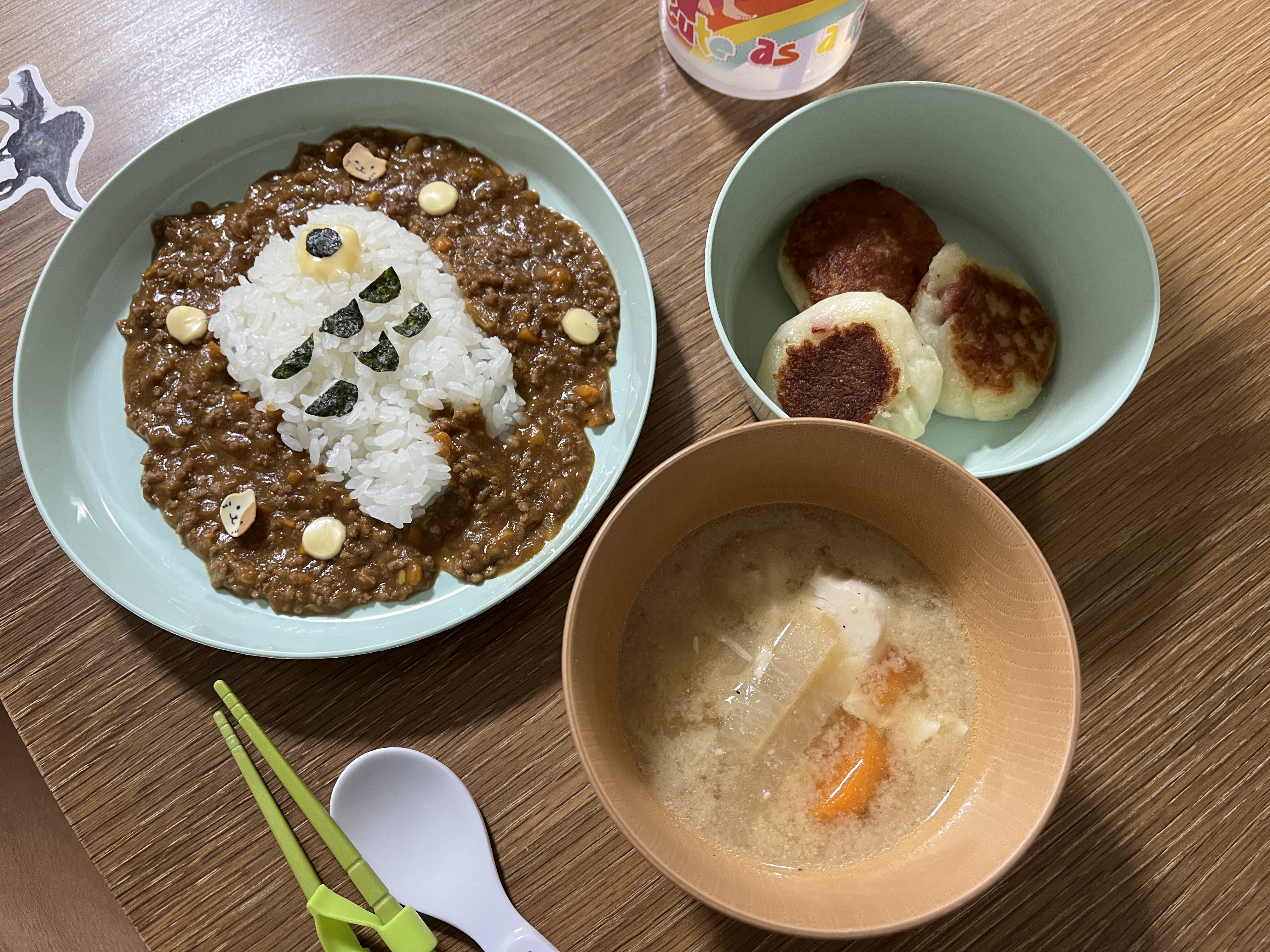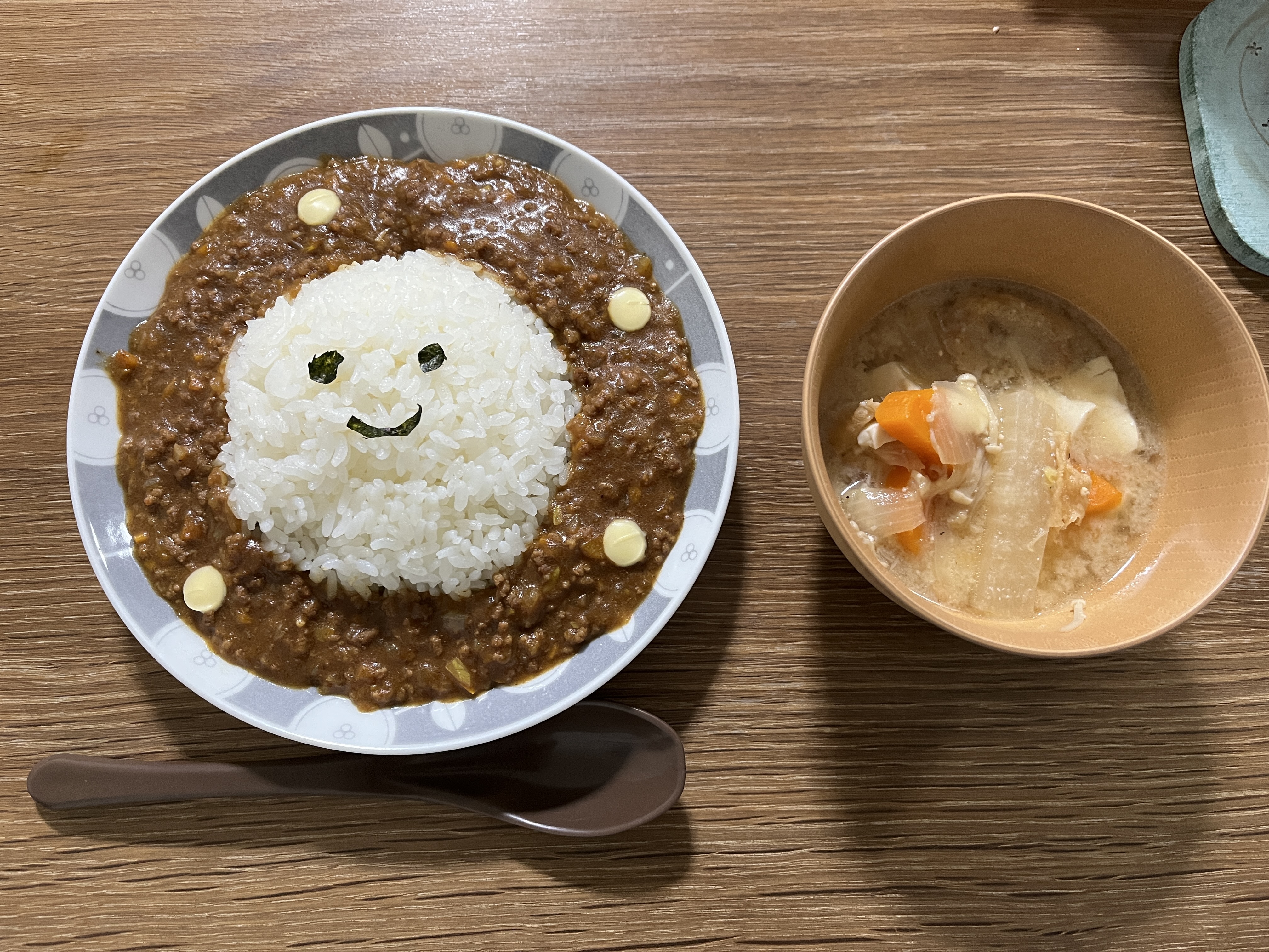5 May is Children’s Day in Japan. It is a public holiday, though ironically only boys celebrate this occasion. There’s a separate festival for girls. My wife was eager to prove her dedication as a mother. She painstakingly crafted a carp streamer scene out of seaweed, bringing to mind the vibrant and gorgeous carp streamers dancing in the wind everywhere in Japan on this special day. I benefitted by extension. I was greeted by a happy face.