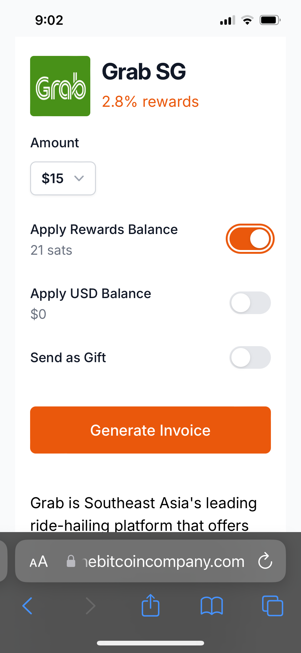 Finally got down to register an account with The Bitcoin Company because why not? And it seemed to me that it offers a greater cashback for some of its participating merchants, whereas Bitrefill offers a flat 1% cashback (if at all).