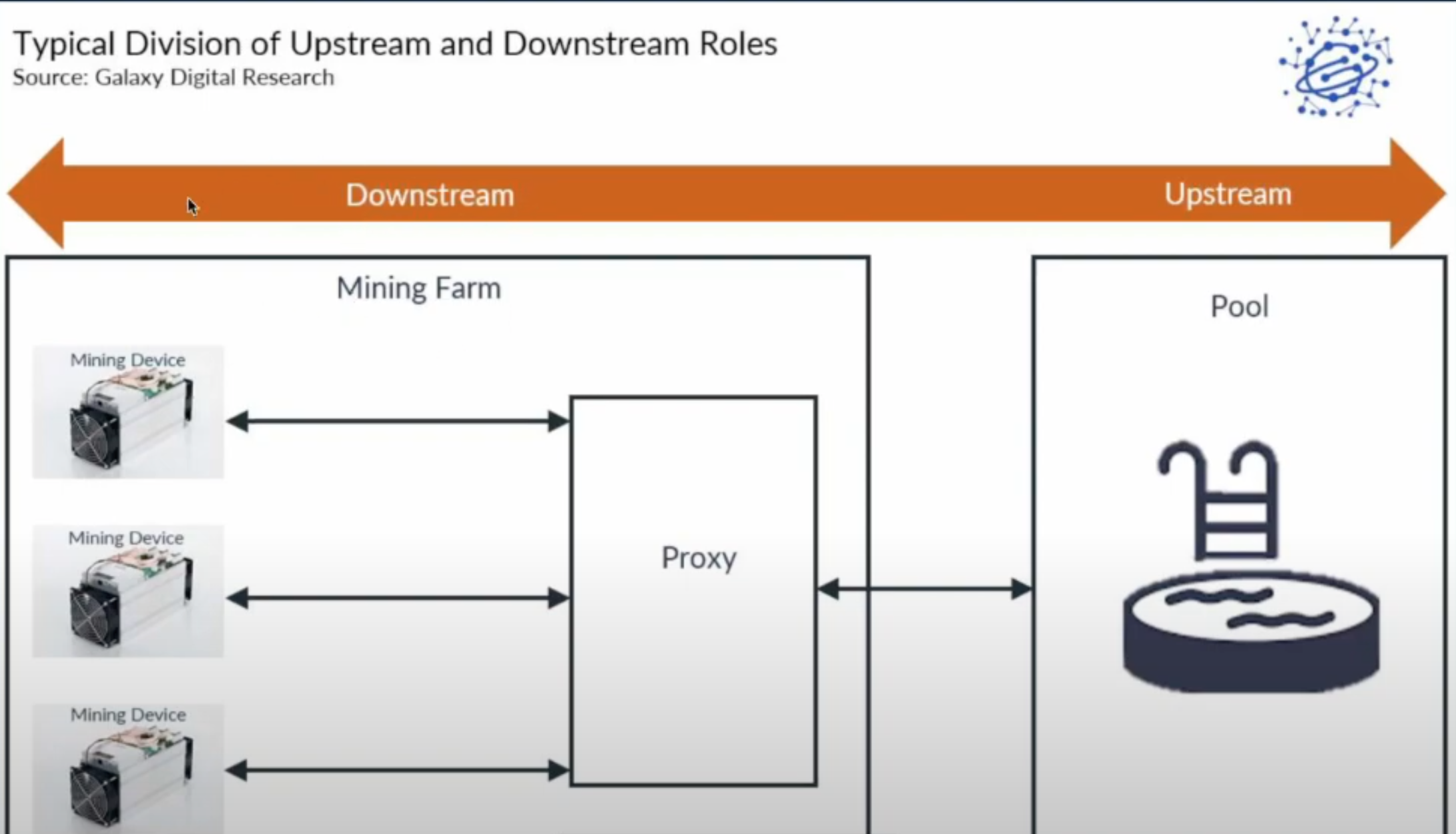 A proxy aggregates connections from the miners and sends these connections to a mining pool.