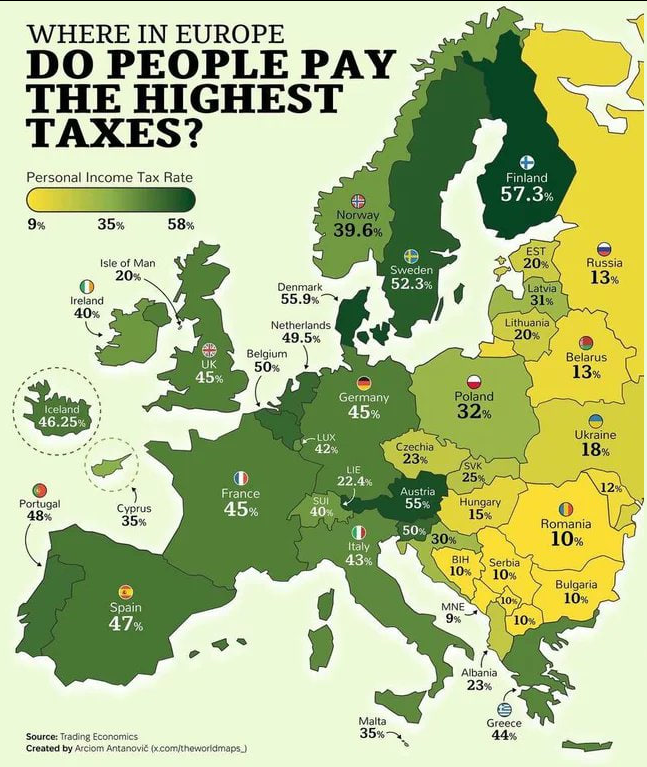 Taxation might explain the rates to some extent, but I do not think it is the primary reason. Also note that the tax rates presented here seem to be the highest marginal tax rates (it is a common problem that taxation between countries is compared only through one tax rate only)