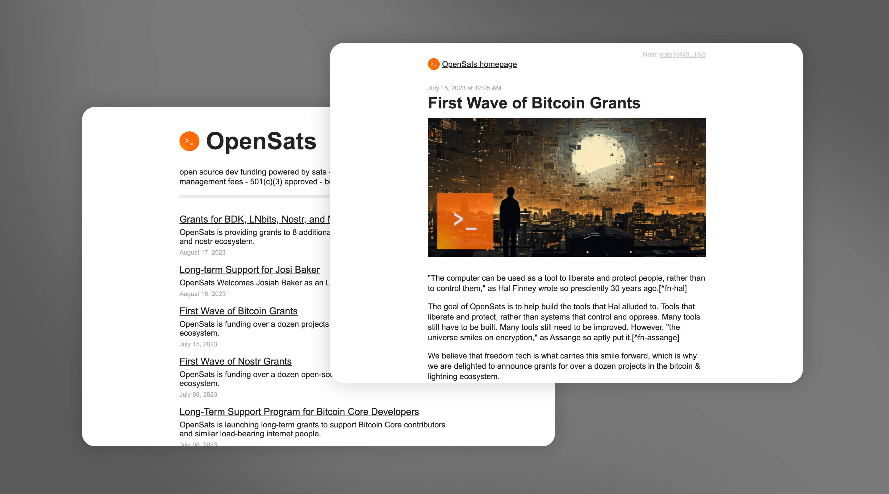 Here you can find some generated blogs for OpenSats, Hodlbod and fiatjaf.