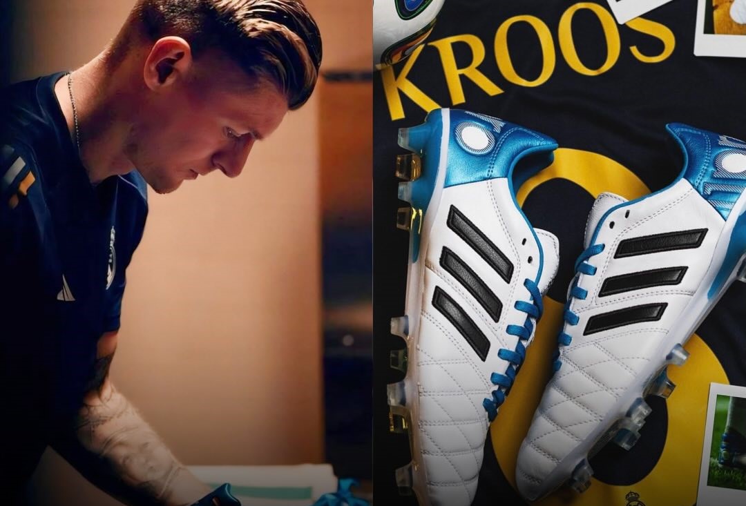 In his last game at the Bernabeu, Toni Kroos played with the same model of boots as always, but with gold details.