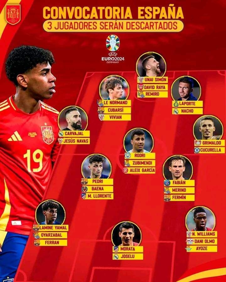 Morata, Joselu, Oyarzabal, Dani Olmo, F. Torres, Nico Williams, Lamine Yamal, Ayoze Perez.