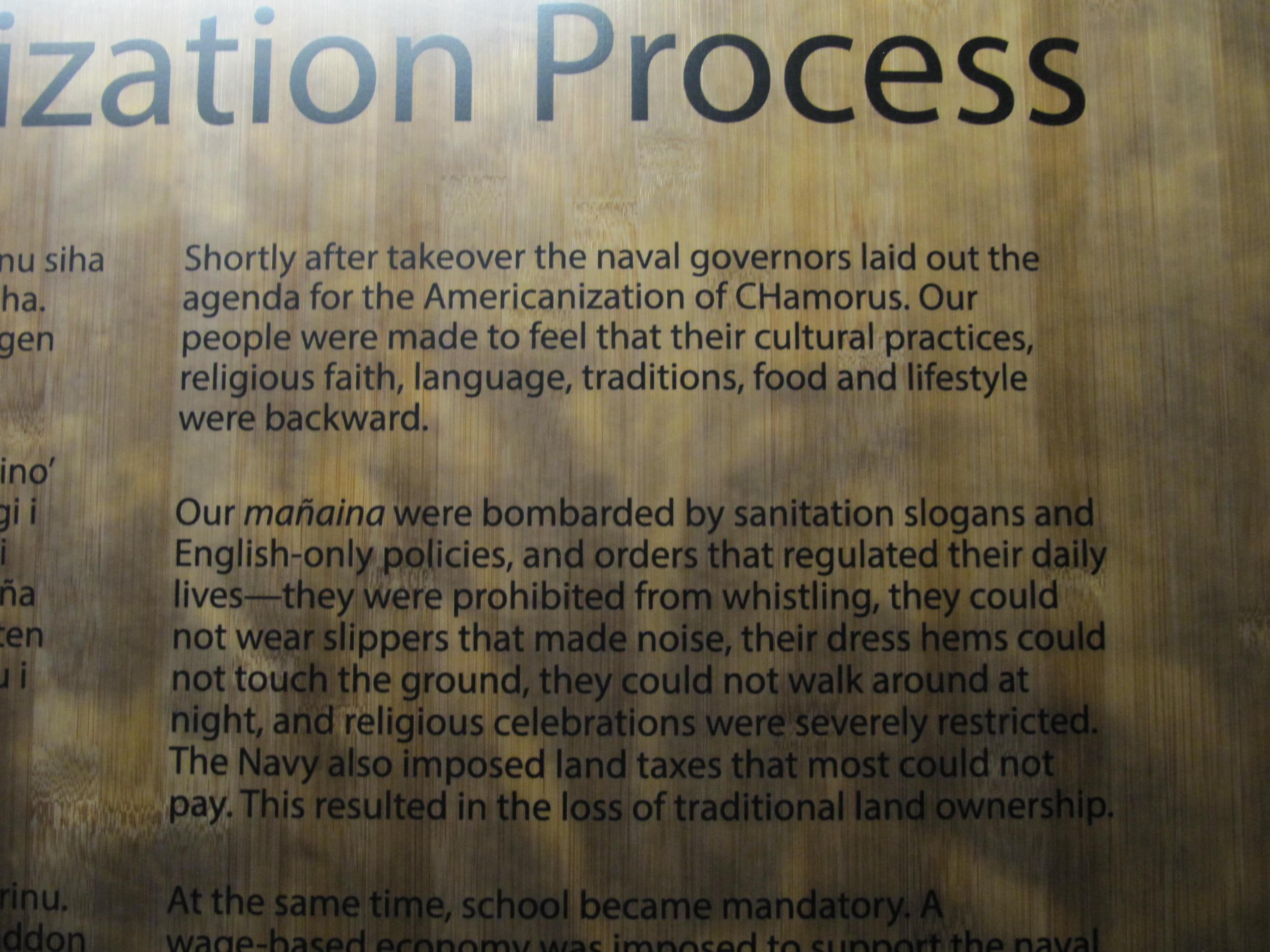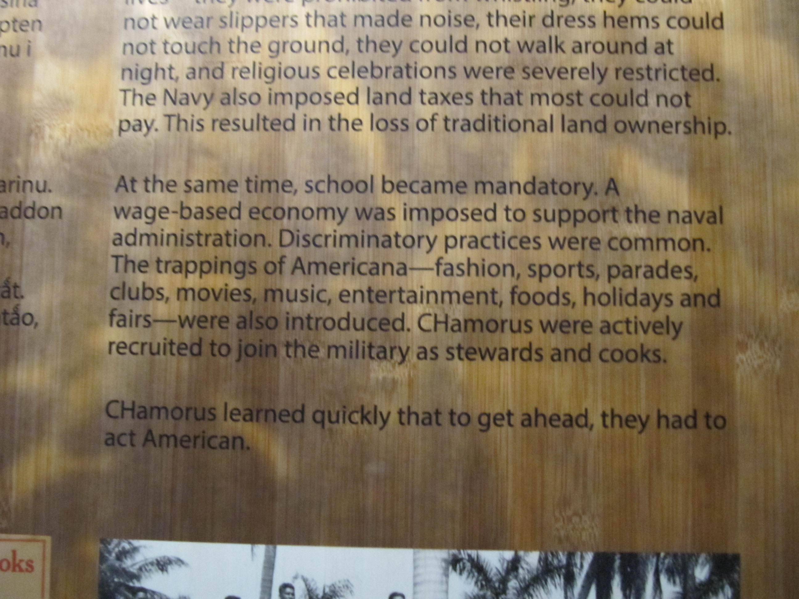 They islanders for decades took take care of the island. They fished, farmed, hunted, voyaged, made tools, art, had stories, had marriages within clans. Then, the Spanish came. When they first came, the Chamorros boarded their boat to greet the weird people(I'm sure they thought they were weird too). It started peaceful until the Spaniards coffer's slowly dried up. This led to the occupation of the island and grew oppressive. Eventually, The Spanish lost the war to the Americans. Guam was then sold to the American gov't as spoils of war, trading one oppressive regime for another.