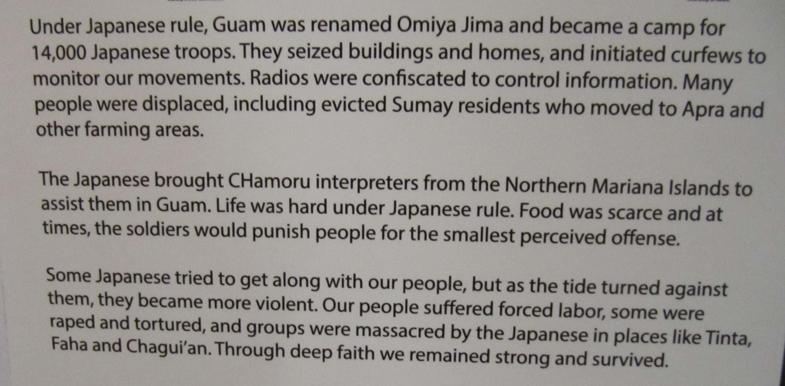 Guam was hit first before Pearl Harbor(The international Date line puts Guam timezone first ahead) but after this, The Japanese invaded and then occupied the island. Note at the bottom, The American Naval governor surrendered. This led to the islanders thus to become slaves to the Japanese Empire.
