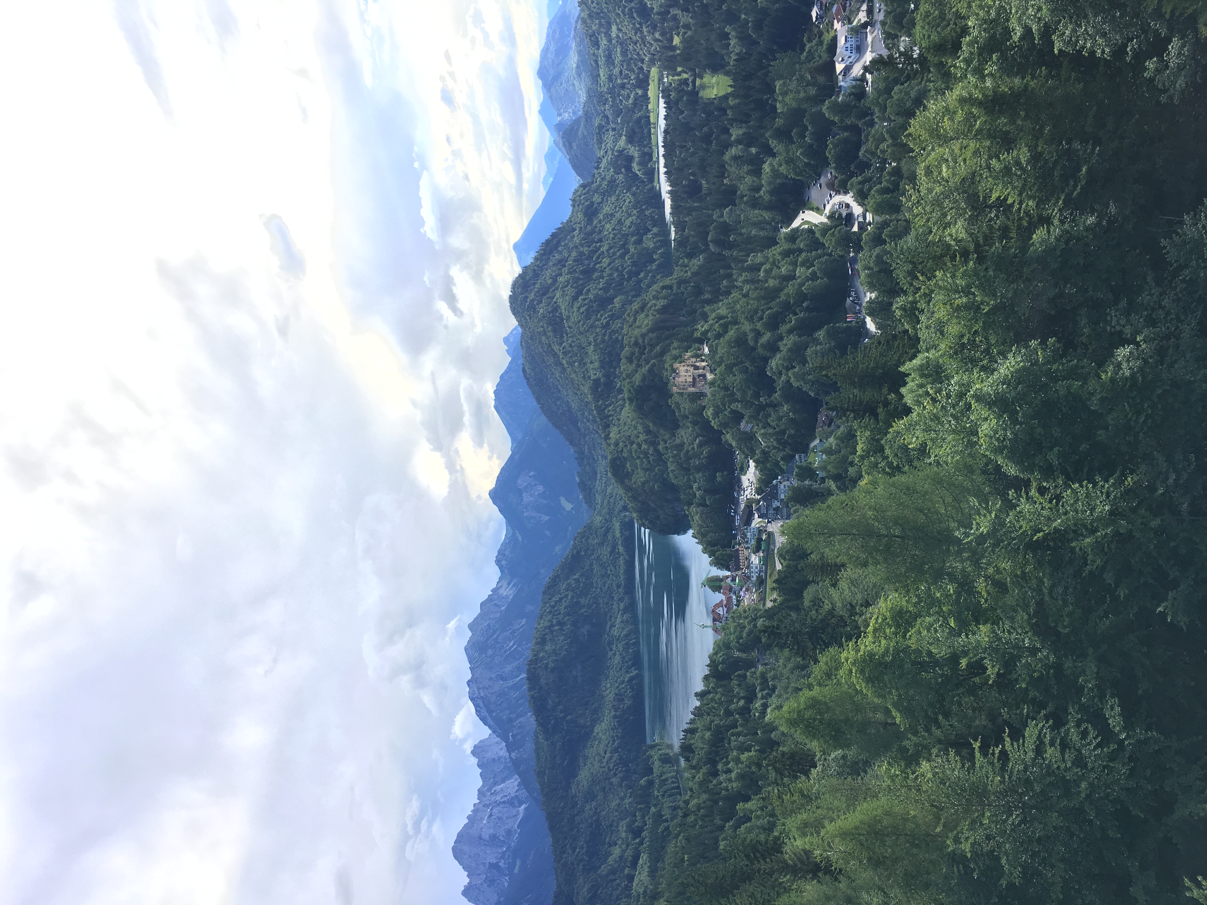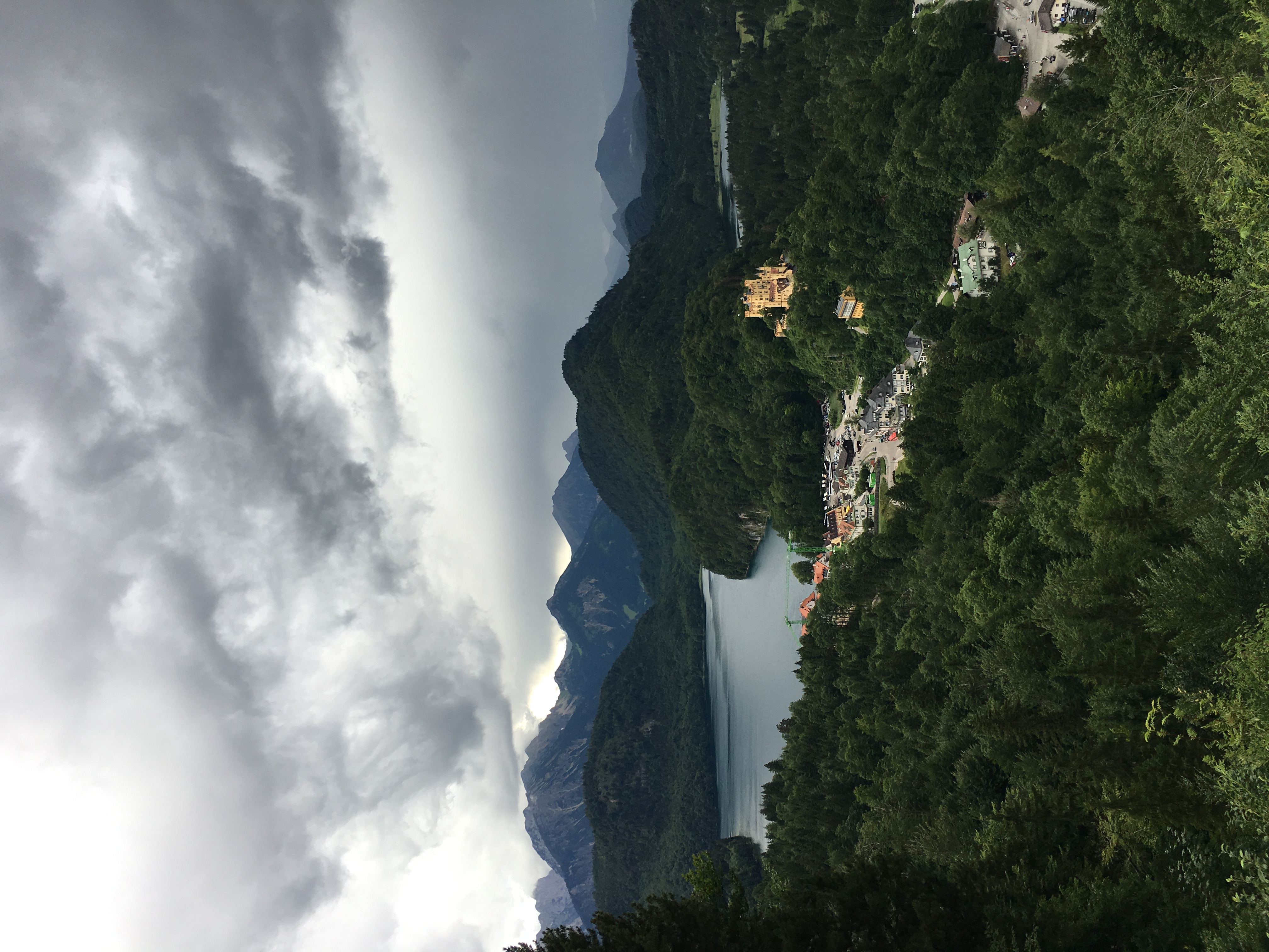 View from Neuschwanstein Castle. Its present appearance comes from the 19th century, when King Maximilian II renovated ruins from a prior castle dating from the 12th century. It was a hunting and summer residence.
