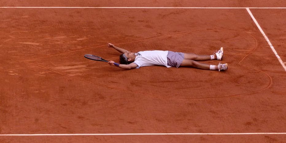 7 - Gustavo Kuerten lying inside a heart at Roland Garros after winning his third championship