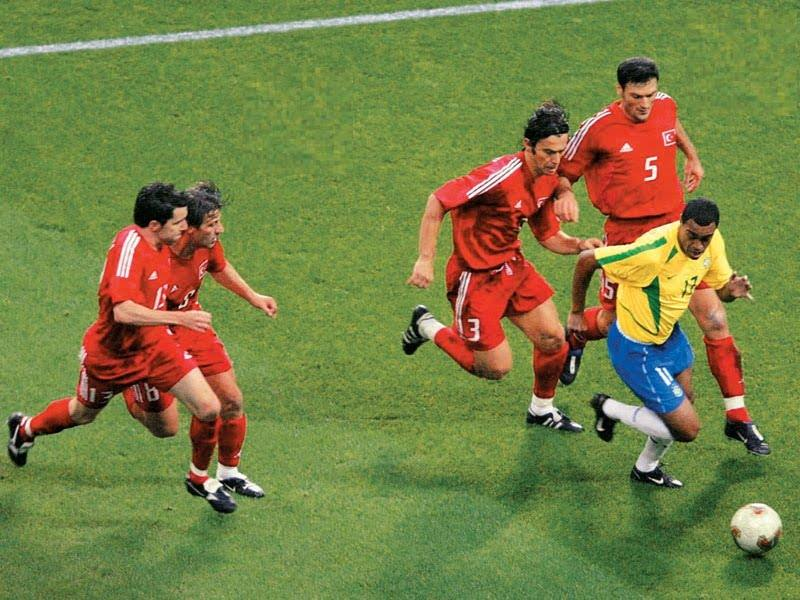 10 - Denilson being chased by 4 Turkish players during the 2002 World Cup