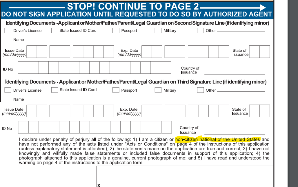 it also states OR non-citizen national of the U.S