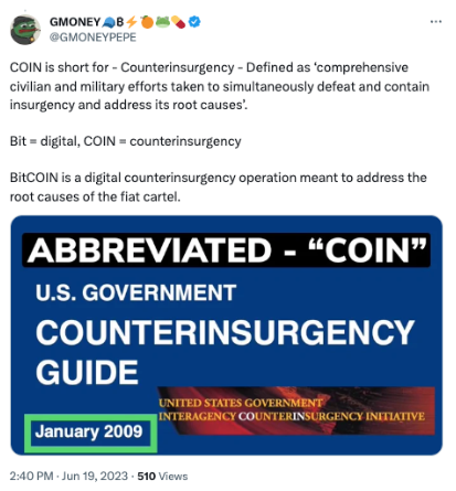 #BitCOIN is a digital counterinsurgency operation meant to address the “ROOT” causes. [central banks]