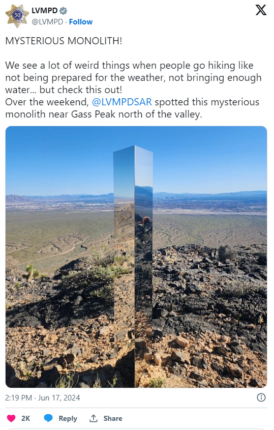 I remember that wave of monoliths, in fact, this is the first time I heard again of monoliths suddenly appearing since then, we will have to be attentive in case we are at the beginning of another wave.