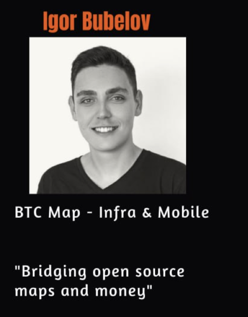| Roland @ Alby | Simon @ Mempool.space | Raj @ Bitshala | Igor @ BTCmap | John Smith |