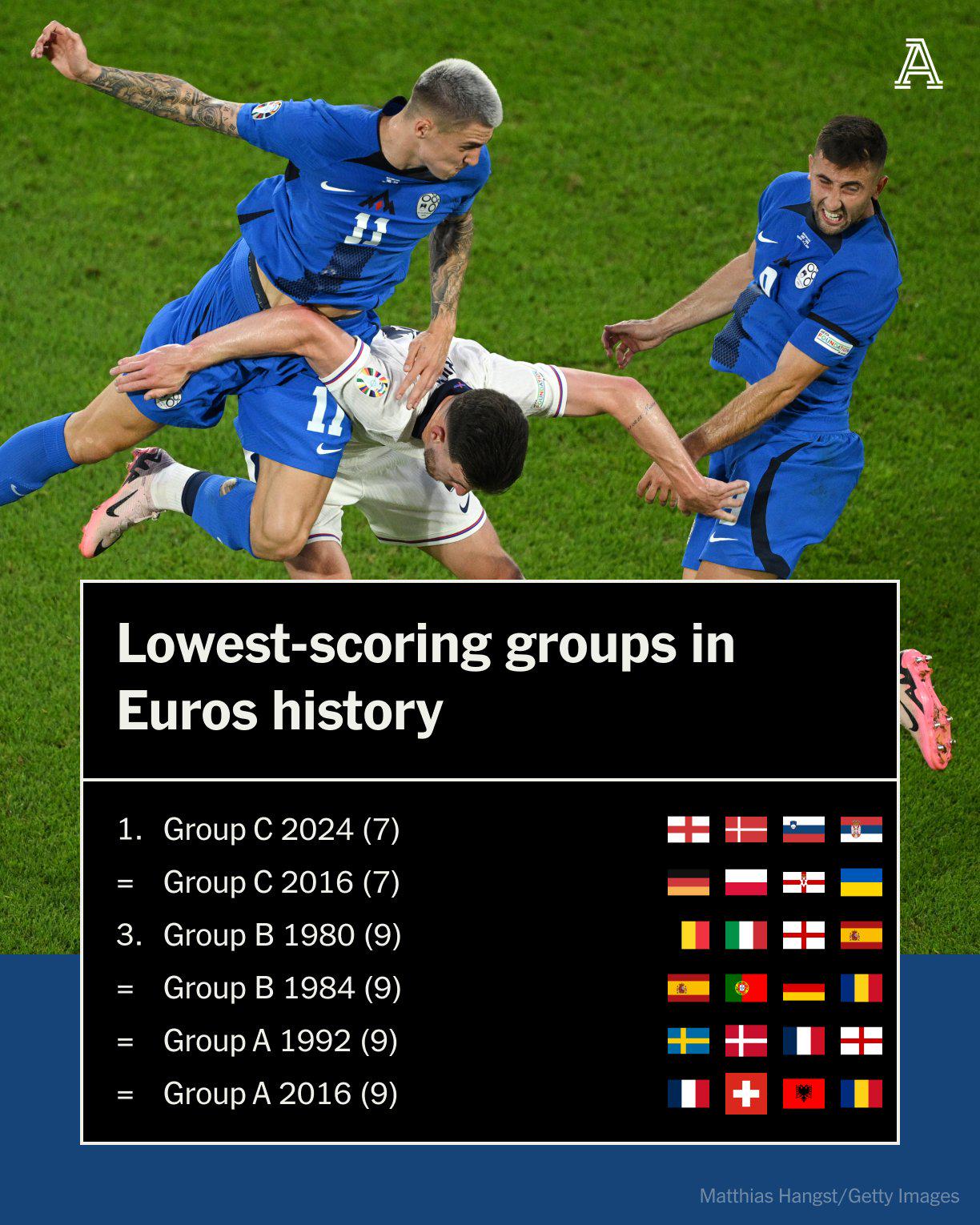 https://m.stacker.news/37133Source: https://www.reddit.com/r/soccer/comments/1doh12z/lowestscoring_groups_in_euros_history/