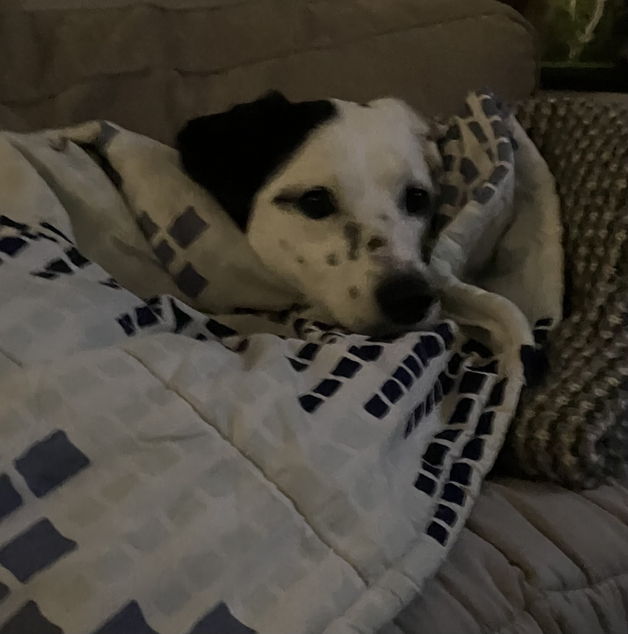It was hot last week but we had a lot of rain over the week and this week is cool so it was a bit cool last night. I think the dog just liked the soft blankets though.