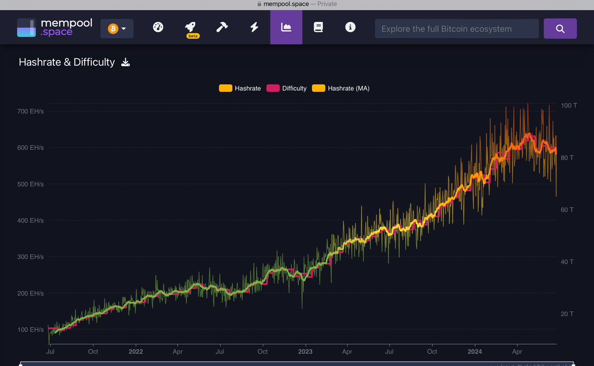 this looks like miners turning off while electricity costs increase (summer) and bitcoin fiat cost is relatively flat